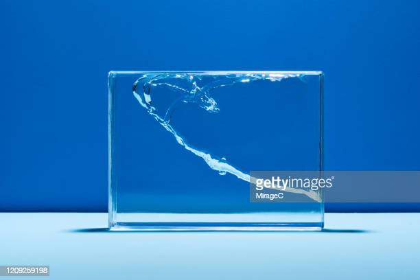 Water Splash in Glass Box Against Blue Colored Background.
